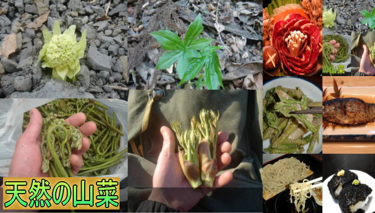 補足:山菜は、フキノトウ・モミジガサ・コゴミ・ニリンソウ・タラの芽等になっておりますが、採れ次第、順番に出しておりますのでご了承ください。